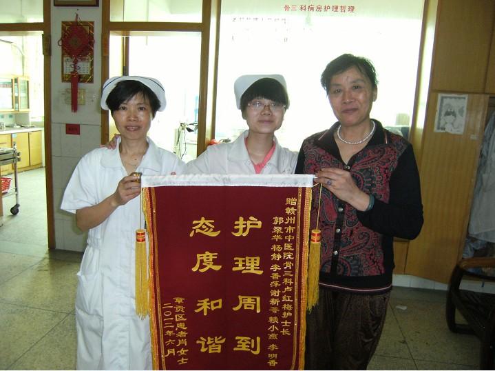 自从开展优质护理服务工作以来,全科护理人员优质、高效、贴心的护理工作得到了患者及家属的赞誉。304床的罗银凤及家属为护理人员送上“护理周到 态度和谐”锦旗,离院时罗奶奶眼眶泛着泪花,双手紧握护理人员的手反复说道“谢谢你们!”327床的曾桂英送上“医术精湛 护理有方”锦旗,在病床上的曾奶奶说:“你们就像我的亲孙女一样”。328床的肖珍梅送上“护理周到 态度和谐”锦旗,感谢全科护士的细心护理・・・・・・