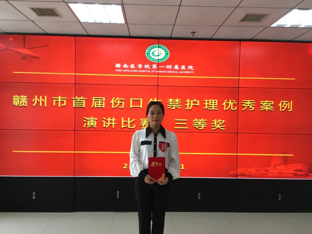 近日,在医院领导、护理部对专科护理的高度重视及支持下,我院护士再传捷报,赣州市中医院压疮小组成员刘玉红在参加赣州市首届伤口、失禁护理优秀案例比赛中荣获三等奖。